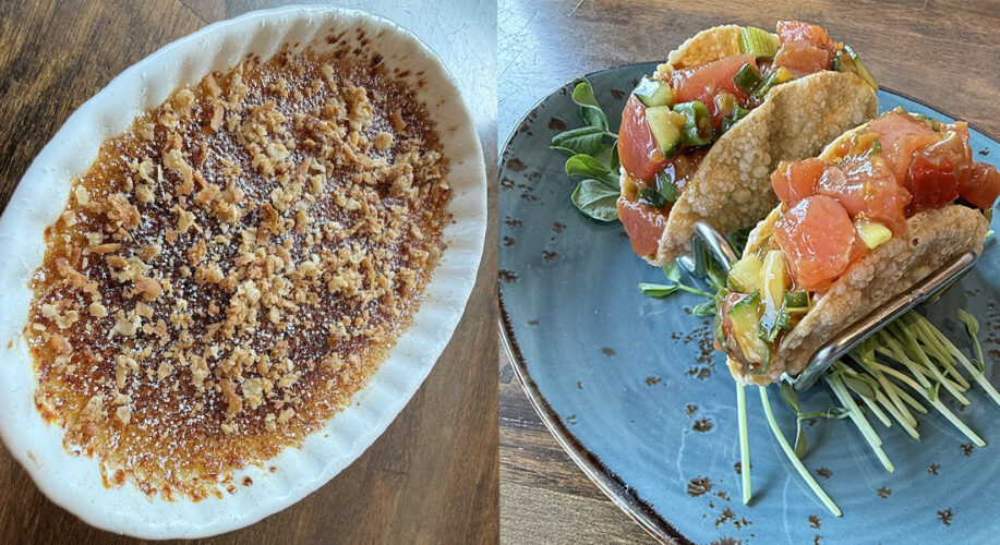 Course 3: Yuzu vanilla crème brûlée with a coconut oat streusel