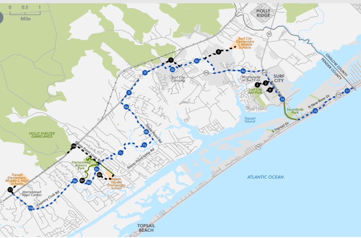 The 12-foot paved multi-use path would connect Nelva Albury Park in Surf City, right at the Onslow County border, to Country Club Road in Hampstead.