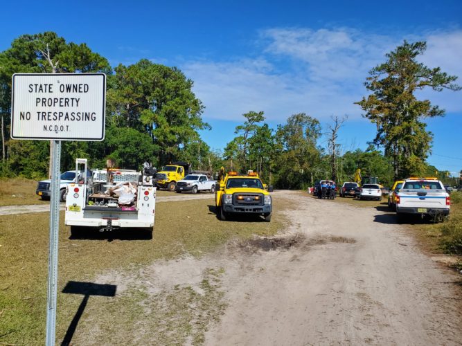 After posting “no trespassing” signs on the land Oct. 18 — up to roughly 100 individuals were living there — NCDOT allowed a week grace period before enforcement was to begin for Wilmington Police Department officers to clear the site. NCDOT returned Oct. 25 for a thorough pickup and crews have collected another roughly 40,000 pounds of trash, costing up to $15,000.