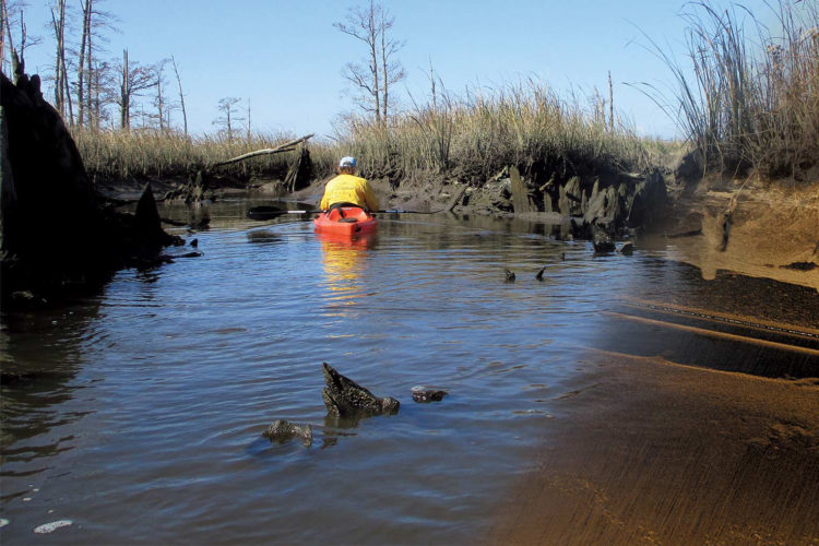 UNCW environmental science professor Joni “Oksu” Backstrom and retired underwater archaeologist Mark Wilde-Ramsing have discovered 45 water control systems spanning 2,000 acres of the northern end of Eagles Island.
