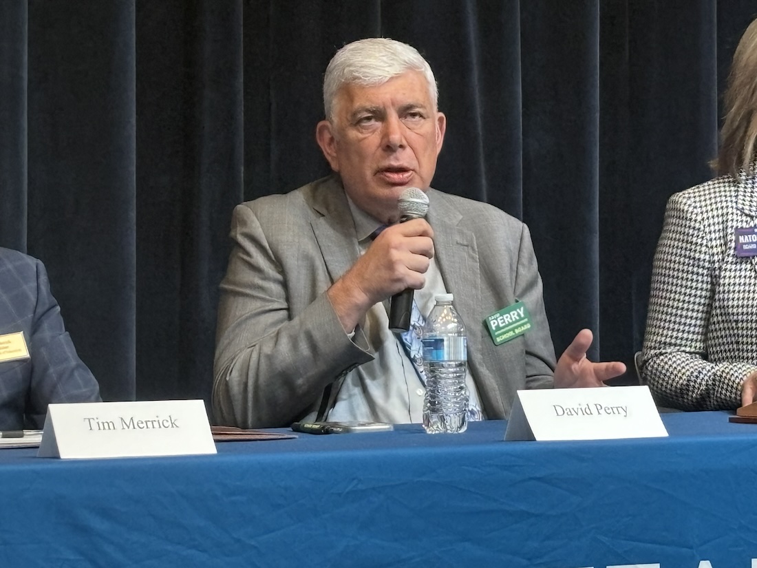 Perry was asked what he thinks is the cause of disparities between schools; he addressed academic disparities as reflected in state performance grades, based 80% on test scores and 20% on growth metrics.
