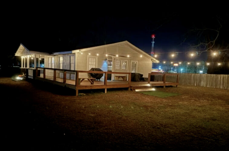 The property on 5406 Castle Hayne Road is owned by applicant Douglas Brandon Paluck with P&P Enterprises. The lot has an old house from the 1940s, a 250-year-old oak tree in the front yard, and a shed out back. Paluck plans to renovate the decades-old house into a bottle shop with putt putt, cornhole, and acoustic live music, with locally-made art for sale.