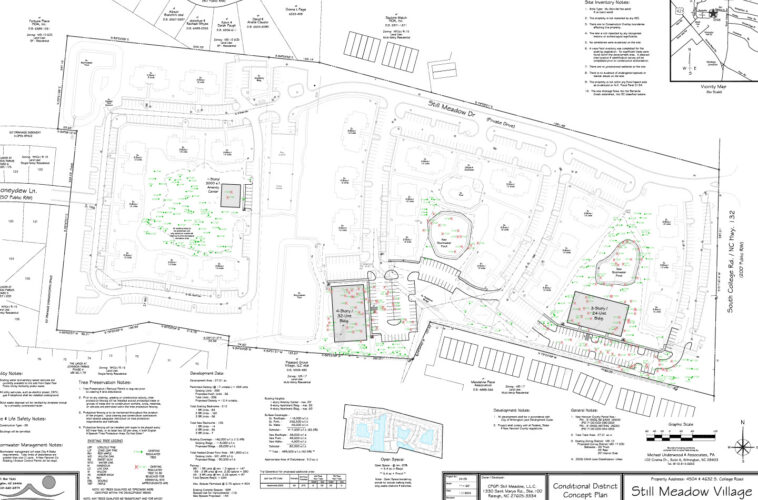 The application states the 27 acres is owned by CPGPI Still Meadow LLC, a subsidiary of Raleigh-based Chartwell Property Group. Still Meadow Village Apartments is their sole development outside of the Triangle, Charlotte and Greenville.