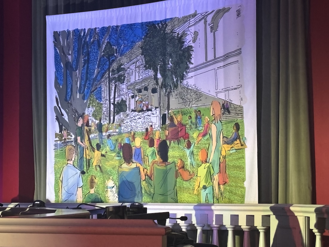 But the heaviest lifting will come in the modification of spaces once obligated by the city government. For instance, the ballroom currently acts as council chambers but once renovated it will become a hippodrome. The theater will seat roughly 300 people on two stories and it will be immersive, outfitted with state-of-the-art technology and floor-to-ceiling accessible LED capabilities to support interactive programming.