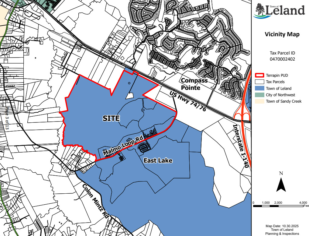The 955-acre Terrapin Landing mixed-use project needed to rezone approximately 37 acres from the multi-family and commercial zonings to office and institutional to include a new hospital from Novant Health. Terrapin Landing is a community located in northwest Leland, to feature 3,398 residential units and 34 acres of commercial space.