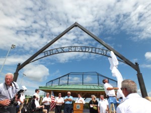 “We ignored the economy,” Johnson said Saturday to a crowd grouped beneath the newly installed Brax Stadium archway entrance, the namesake being Brax Fundraising, which partners in the project gave large credit. “We dreamed big,” said Johnson. “Very, very big.”