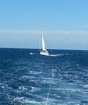 The sailboat was placed in tow but due to a rough sea conditions and high winds, the crew was only able to tow the vessel at a speed of 2 knots.