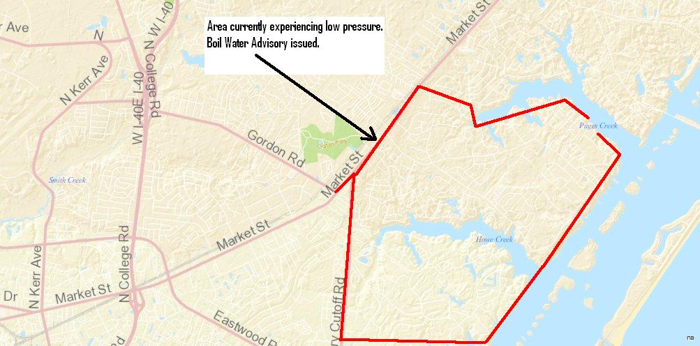 The advisory affects all addresses on the east side of Market Street between Gordon Road and El Ogden Road, all addresses on Military Cutoff Road between Cayman Street and Market Street, portions of Landfall north of Pembroke Jones Drive, and portions of the Middle Sound Loop Road area south of Pages Creek (see map below).