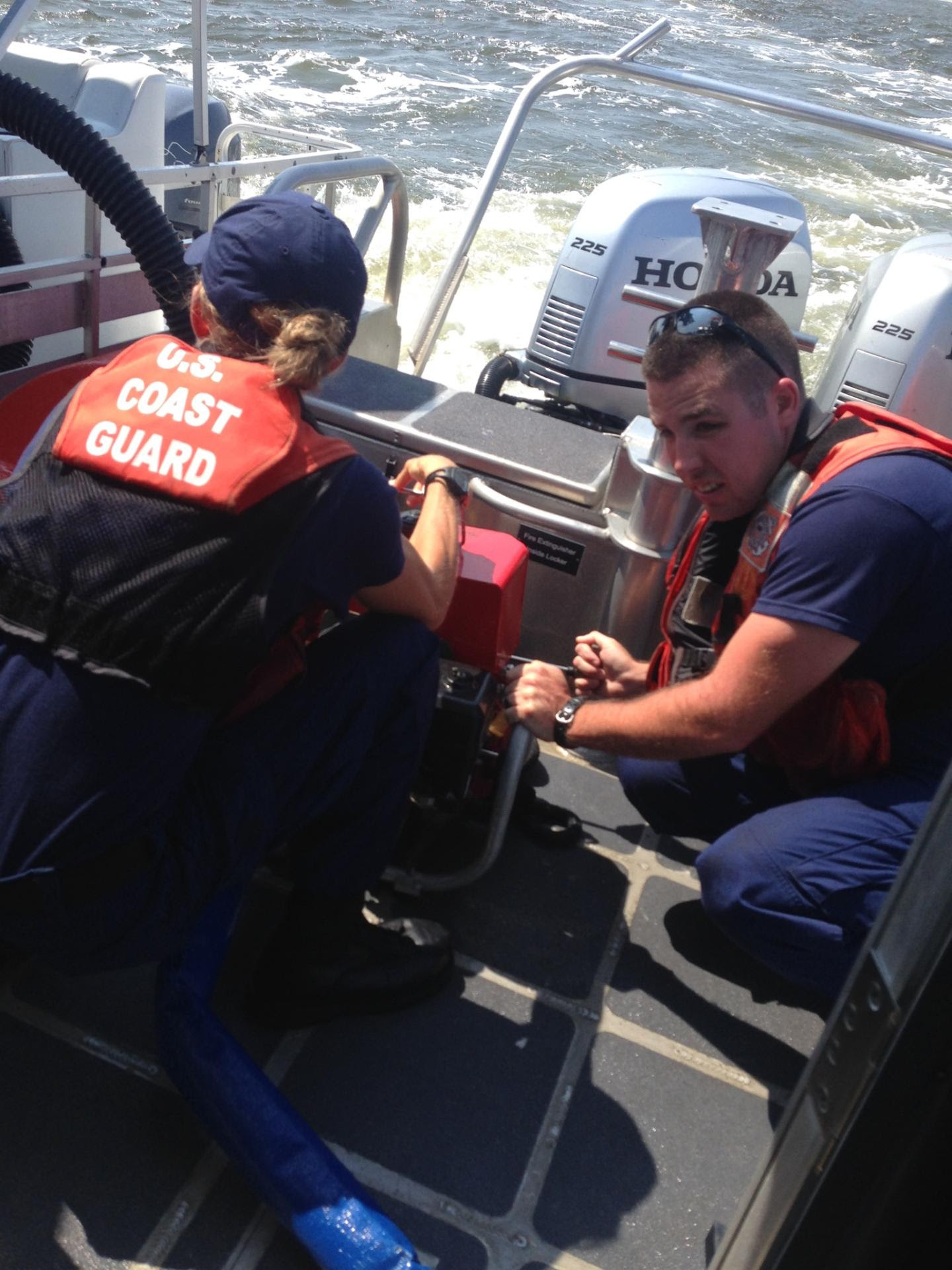 The boaters were taken to U.S. Coast Guard Station Oak Island while a crew stayed on scene and used pumps to remove water from the pontoon boat. The pontoon boat was eventually towed to the station.