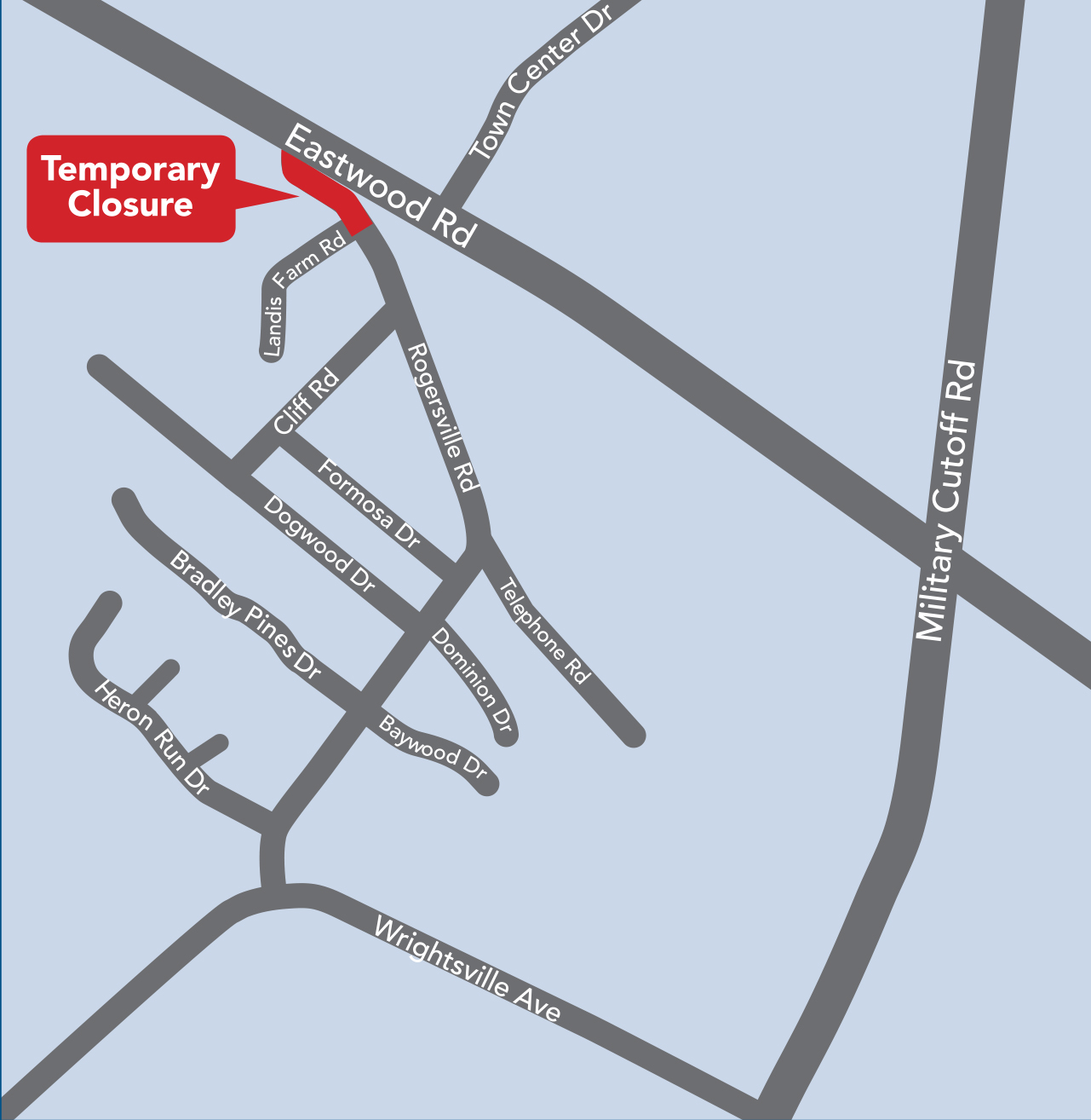 During the closure, local traffic will only be able to access homes and neighborhoods from Wrightsville Avenue.