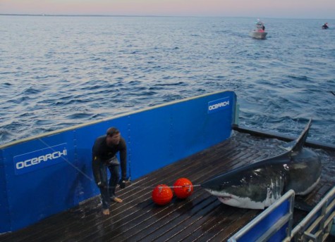 Mary Lee is one of many sharks tagged and tracked by OCEARCH, a nonprofit research organization that monitors, among other things, the migratory patterns of great white, tiger and other sharks. The sharks monitored by OCEARCH are tagged with a GPS device and the sharks “ping” when they break the water’s surface.