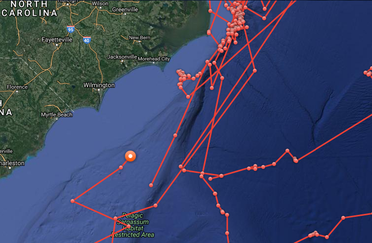 Mary Lee’s latest ping near the Cape Fear coast came in at 12:25 p.m. Monday, according to the OCEARCH Global Shark Tracker. It’s her closest ping to Wilmington in the last year. She pinged near Wilmington’s coast several times in June, but not as close as her ping Monday afternoon.