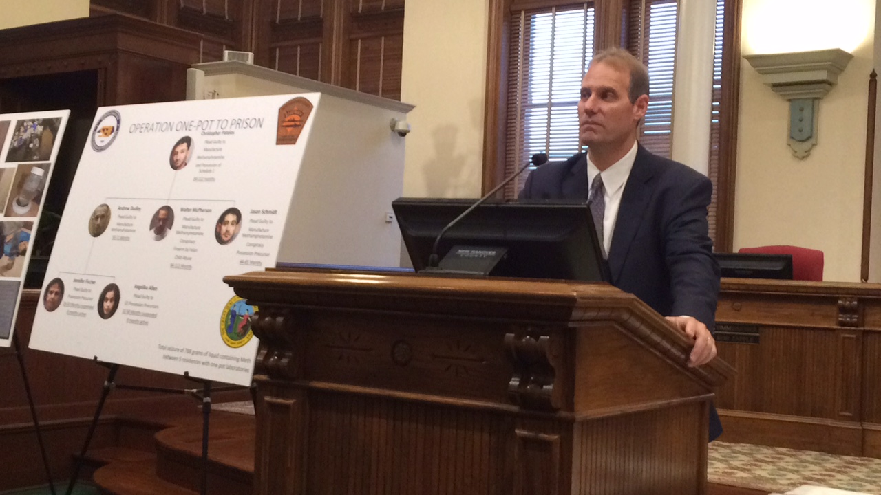 In a press conference on Friday, David said authorities have recently wrapped up one meth investigation that put six people behind prison bars and removed 788 grams of toxic liquid containing meth from five area residences used as laboratories in 2015.