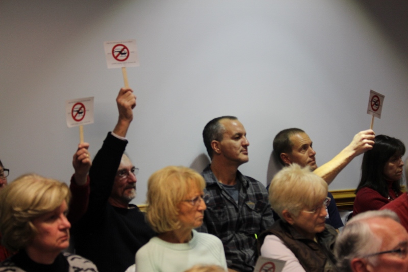 While there were several issues on the agenda, it was clear from the numerous signs – bearing a ‘no helicopter’ logo – that the future of helicopter tourism in Carolina Beach was the main attraction. Mayor Dan Wilcox acknowledged this, asking the crowd “let’s just be respectful, no booing, no clapping, no rude gestures.” Wilcox than altered the agenda proceedings slightly for the sake of time, allowing council staff to make two presentations before public comment was opened.