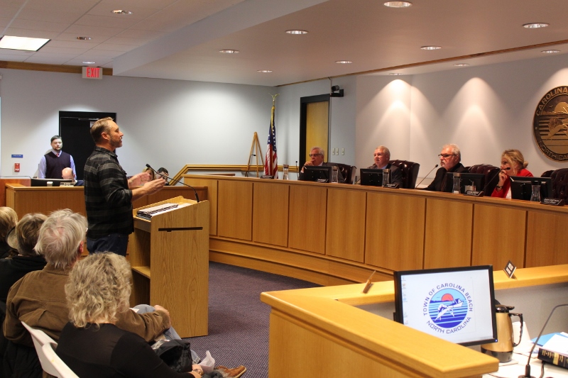 CAROLINA BEACH — The Town Council meeting on Tuesday, Jan. 10, was packed with protesters, overflowing into the parking lot where people listened to the proceedings over the loudspeaker. So many vehicles arrived that Carolina Beach Police Chief Chris Spivey had to intervene, preventing tow trucks from clearing the lot. It appeared that Alex Torres, a Carolina Beach resident who has helped lead the protest against allowing helicopter flights in Carolina Beach, had made good on his promise to “pack the place.”