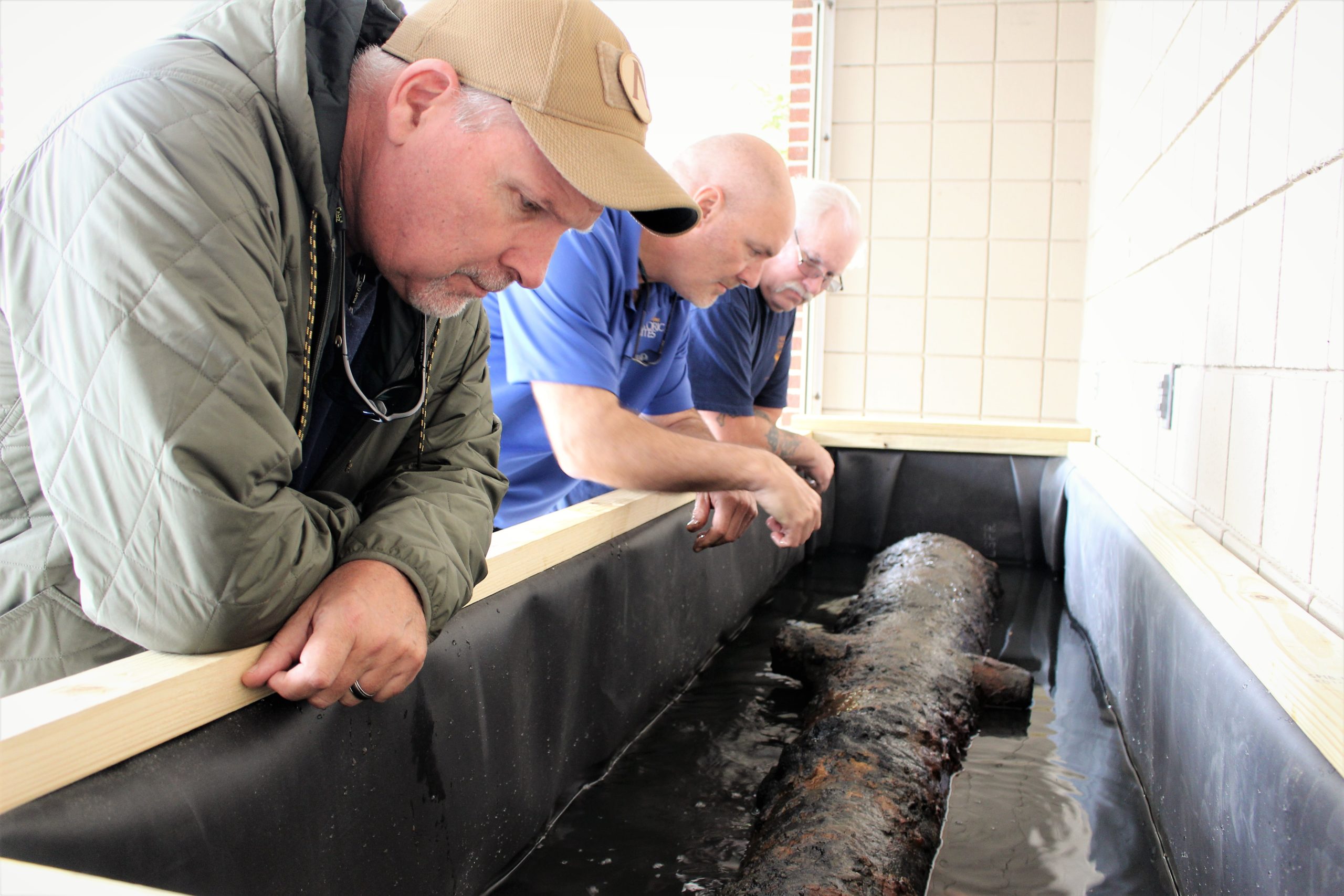 McKee was joined by Deputy State Underwater Archaeologist Billy Ray Morris and Assistant State Archaeologist Nathan Henry on Thursday for the official start of the cannon’s restoration process, the first of its kind to take place at the historic site.