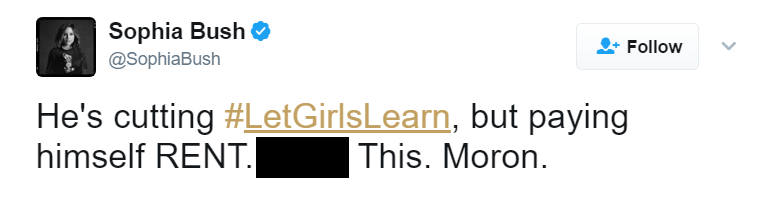 Bush worked with the First Lady on the Let Girls Learn program and was a vocal critic of the President Trump’s recently reported plan to discontinue the program. An internal White House memo that made its way to the press outlined plans to end the program; the White House has since denied it will end the program).