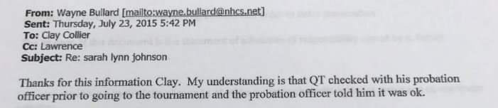 According to Johnson, he went to Ashley High School to ask about the incident. He received no answers, and the school filed a notice to ban him from Ashley property in an email from Wayne Bullard, general counsel for the New Hanover Board of Education. The same email claimed that Sarah Johnson’s assailant had “checked with his probation officer prior to going to the tournament and the probation officer told him it was okay.”