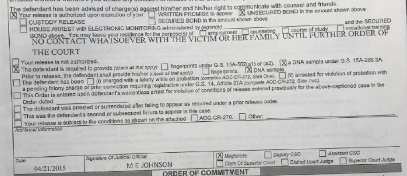 Two weeks later, the boy who had assaulted Sarah Johnson turned himself in. He was charged with the sexual battery of Johnson and released on $5,000 bond. As part of his release order, he was ordered to have no contact with Sarah Johnson or her family. Johnson said he again contacted the school and was again rebuffed.