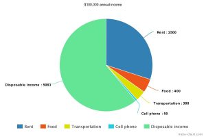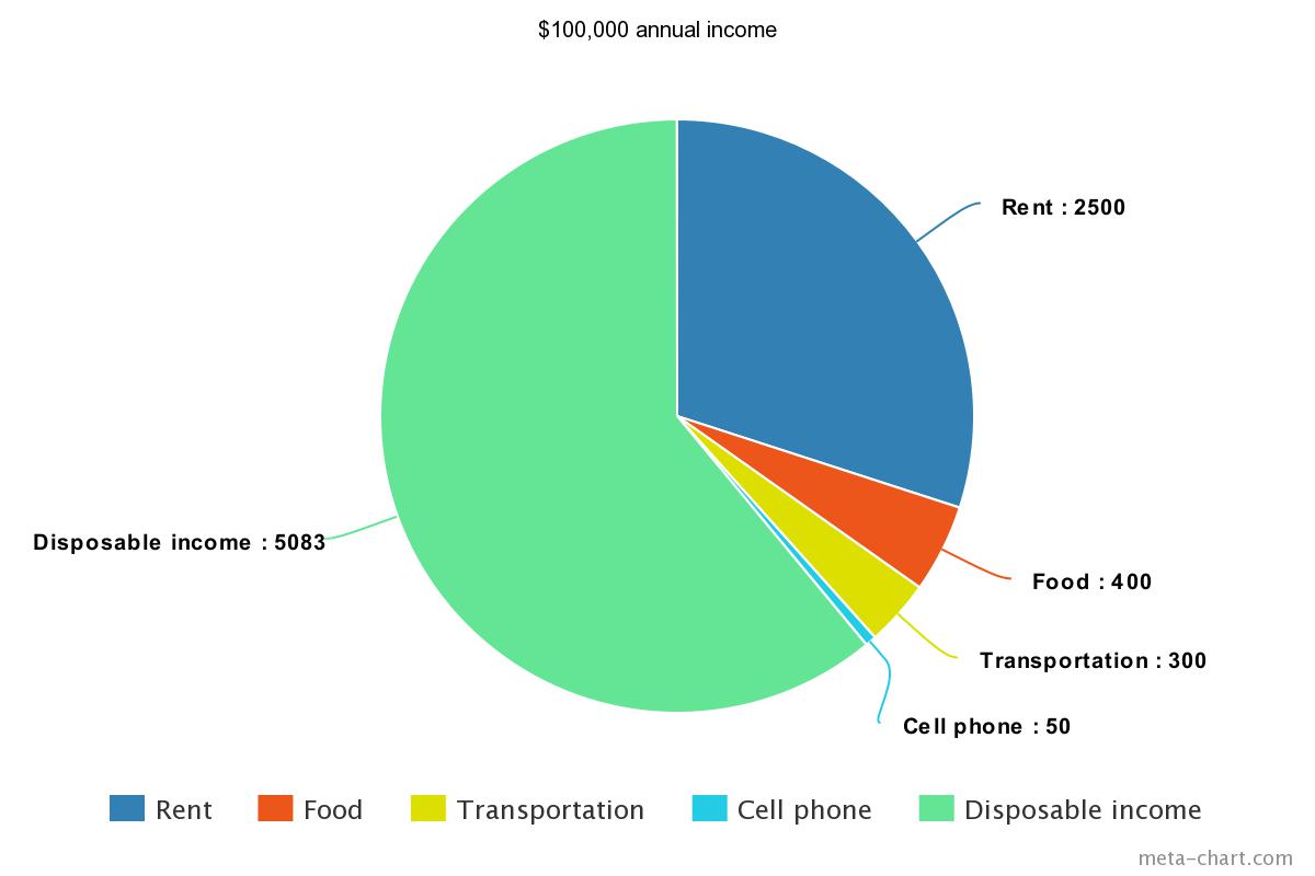 The two graphics above show the amount of disposable monthly income after paying 30 percent of income for housing/rent for a service industry worker compared to someone making $100,000 annually.