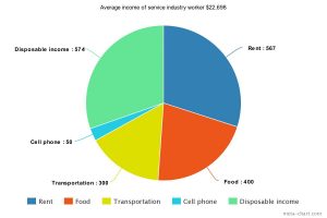 At $720 per month, the annual amount spent on rent alone would be $8,640, or 38 percent of the average income for the service industry workers.