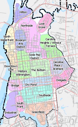 The city considers “greater downtown” to span from Smith Creek to Greenfield Lake and the Cape Fear River to Burnt Mill Creek. This 5.62 square mile region employs an estimated 16,000 individuals.