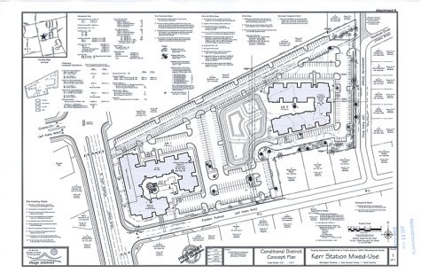 Traffic generated by the rezoning and project’s construction would result in traffic “in excess of its reasonable capacity,” according to the application. “The ongoing widening and improvement of Kerr Avenue will mitigate current traffic service issues, thereby allowing more density to become feasible in the area.”