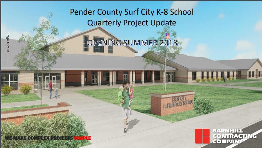 The costliest of all of the projects funded by the school bond with a price tag of $38.6 million the Surf City K-8 school project is on track for a July 1, 2018 completion date.