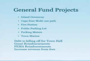 Over the past several years the town has entered into several different capital projects that utilized its general fund including the Island Greenway, Cape Fear Multiuse Path, parking meters, the purchase of a new parking lot, and more.