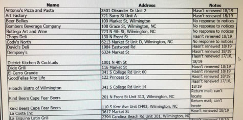 On February 18, the city’s finance department sent a letter to the Jacksonville branch of the ALE, listing 34 Wilmington businesses that had not renewed their city license, some for multiple years.