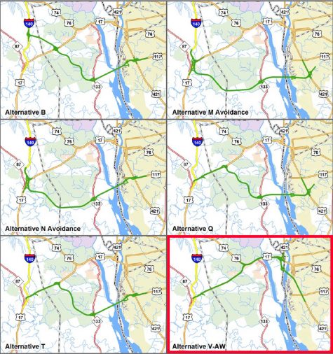 However, route MA and NA would negatively impact the neighborhoods of Snee Farm, Stoney Creek, the Farms at Snowfield, where many families are still recovering from flooding damage caused by Hurricane Florence. Route Q would result in the lowest number of relocations, 26, while route T would have the highest, according to NCDOT’s Environmental Impact Statement.
