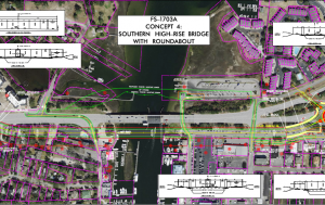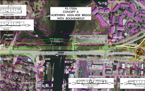 There are multiple different concepts for construction, some of which include a highrise bridge, while others maintain a drawbridge.