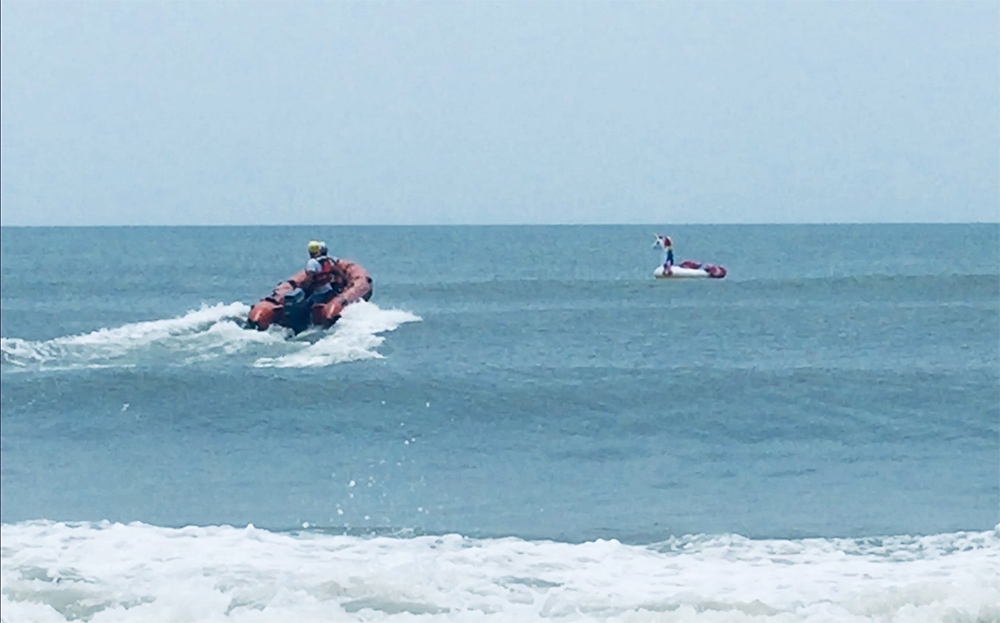 “Once it was out past the waves, the big float acted like a sail and the unicorn float kept going away from the beach,” Oak Island Water Rescue posted on Facebook Monday.
