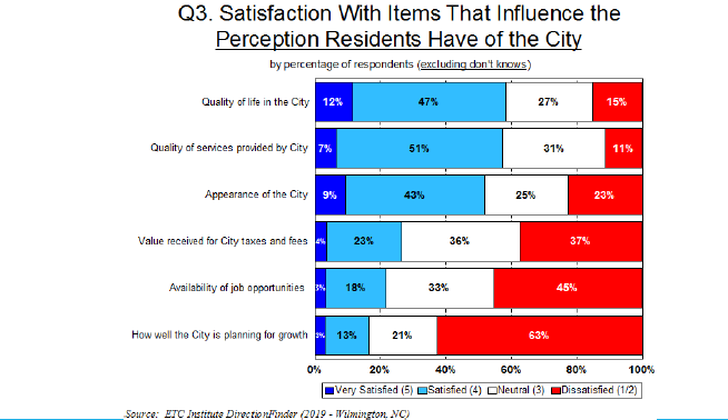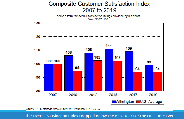 Despite common complaints by residents at City Council meetings and on social media, the city’s residents actually ranked Wilmington higher than the Atlantic Regional Average and 8% above the country average for quality of services.