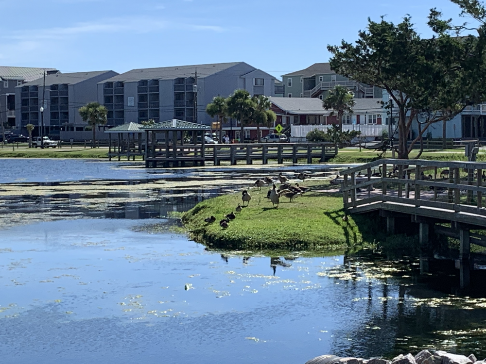 The Town of Carolina Beach’s Lake Park is the home to dozens of geese that some residents are saying have created a mess of the park; algae growth has also taken over a large portion of the water.