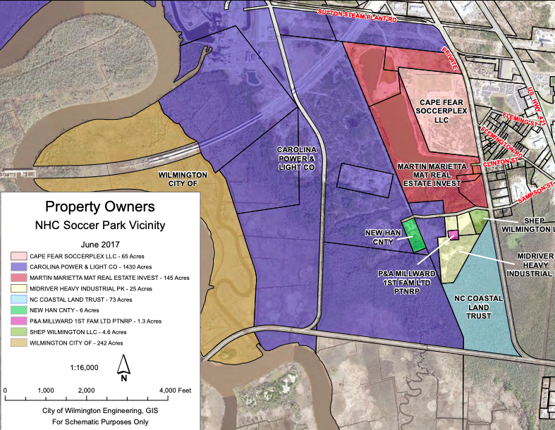 The land in question is actually located in New Hanover County, not the City of Wilmington, but will be annexed into the city if the deal is approved. It consists of 65 acres, half of which remain undeveloped.