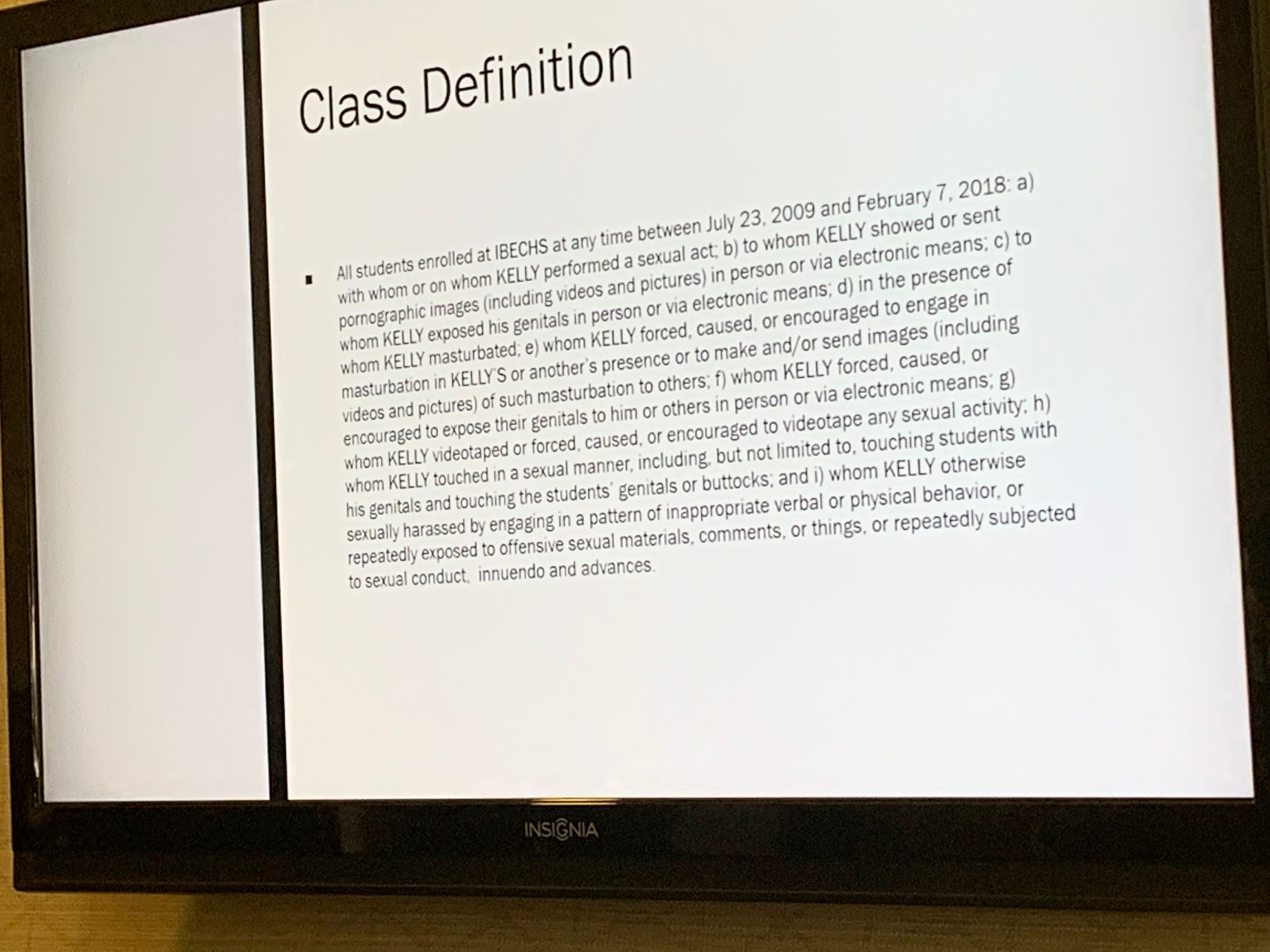 Rhine, Lea, and their team are asking the court to allow the lawsuit to proceed as a class action, meaning it would be able to include those who fall under the parameters of the suit — which, in general, are that prospective plaintiffs were students at Isaac Bear Early College during the timeframe of the suit, and were victims of Kelly.