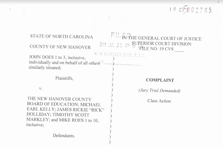 The lawsuit names as defendants former teacher and convicted sex offender Michael Earl Kelly, the New Hanover County Board of Education, Deputy Superintendent Rick Holliday, Superintendent Tim Markley, and as-of-yet-unnamed other employees. (Note: According to Board Attorney Wayne Bullard, there is no legal distinction between suing the school board and suing the district.)