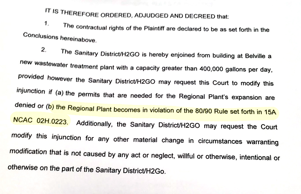 Judge Hooks’ order includes a now-relevant caveat: H2GO can request a modification to the 2010 injunction if the county’s plant violates the 80/90 rule.
