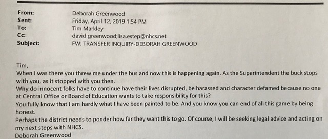 On April 12, former Principal Deborah Greenwood – who is now the principal of an elementary school in South Carolina – wrote New Hanover County Schools (NHCS) Superintendent Dr. Tim Markley saying that he had thrown her “under the bus.” Greenwood was addressing a complaint filed concerning her former role in the Forest Hills second-language immersion program; Greenwood also included New Hanover County Board of Education Chairwoman Lisa Estep. The email was acquired as part of a public records request to the Rock Hill school district.
