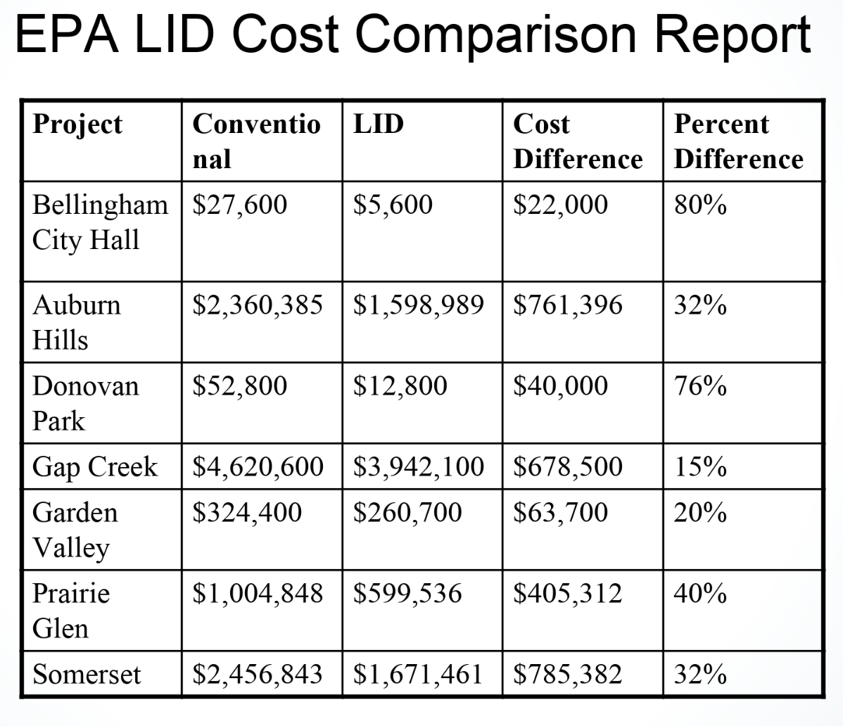 Economic benefits of LID