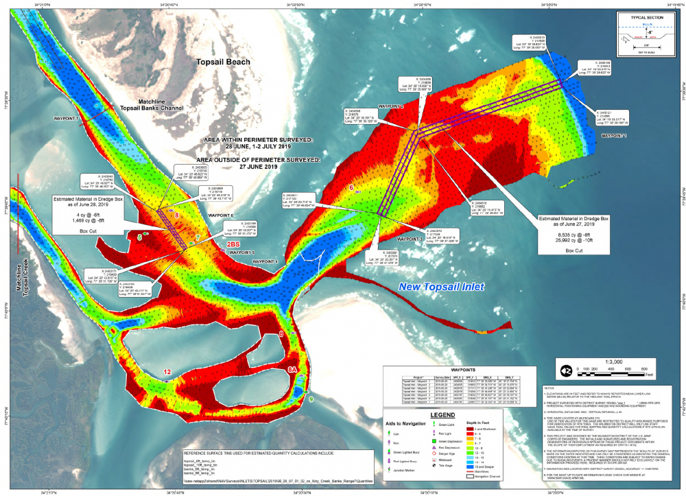 Gibson said the work will consist of dredging 2.2 million cubic yards of sand from New Topsail Inlet and building a six-foot-high, 25-foot-wide frontal dune and approximately 125 feet of dry sand beach. Bids for the project will be received on September 24, according to Gibson, with options for completion in either April 2020 or April 2021.