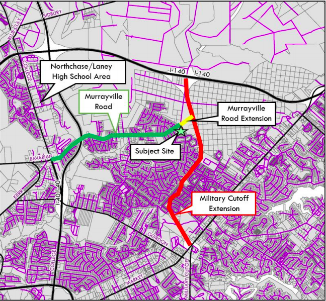 “During the design of the Military Cutoff extension project, NCDOT negotiated with the developer to extend Murrayville Road to connect to the future Military Cutoff extension. Doing so will allow Murrayville Road to be utilized as an east/west collector road, ultimately connecting Castle Hayne Road to Military Cutoff.