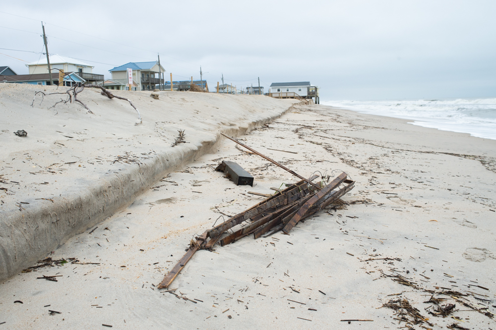 Surf City councilwoman Teresa Batts, who also serves on the Topsail Island Shoreline Protection Commission, said the beaches of Topsail Island suffered varying degrees of erosion. In Surf City, she said about five dune breaches occurred in a stretch between the 1300 and 1700 blocks of North Shore Drive, and three-foot escarpments were seen in several places.