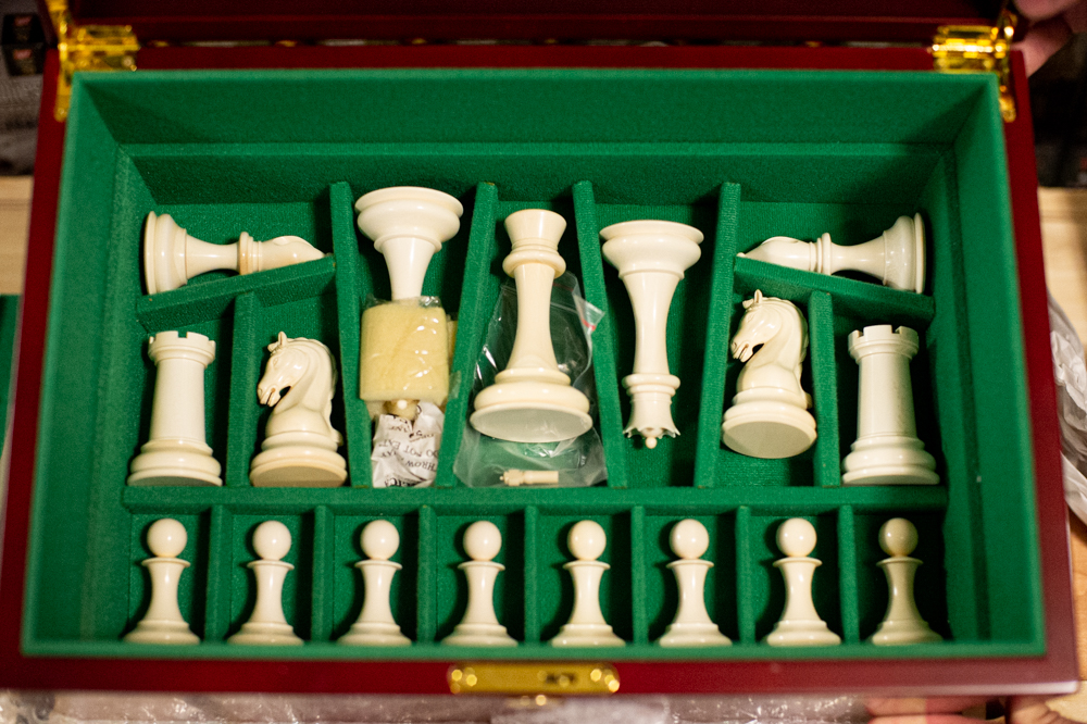 Perhaps the collection’s most prized item is a chess set carved by renown ivory sculptor Oleg Raikis from 20,000-year-old mammoth ivory found in Siberia and heartwood ebony, valued at $27,000. When employee Connor Locklin first saw the set was made of ivory, he thought it’d be an issue — the commercial trade of elephant ivory has been banned in the United States since 2016.