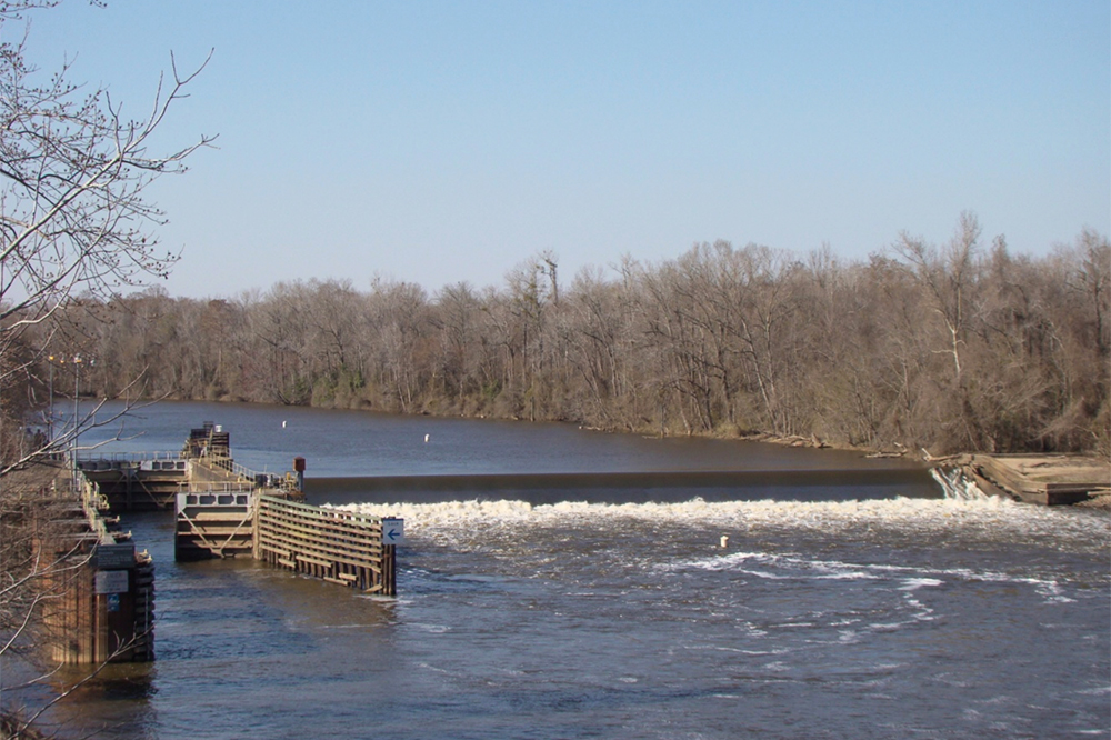 Though not by design, this infrastructure holds back a pool of water just behind its concrete spillway. Water supply intake stations operated by Lower Cape Fear Water and Sewer Authority (LCFWASA) and Cape Fear Public Utility Authority (CFPUA) located directly upstream rely on this pool to provide drinking water to more than 350,000 people downstream. Another pool of water created by Lock and Dam No. 3 supplies drinking water to more than 250,000 people served by the Fayetteville Public Works Commission, which also supplies water to the Fort Bragg military base.