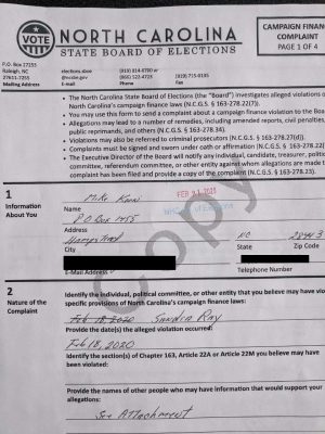 The New Hanover County Board of Elections has passed the complaint to the North Carolina State Board of Elections; Ray has not yet responded publicly to Korn’s complaint, but this article will be updated with any future comment from her.