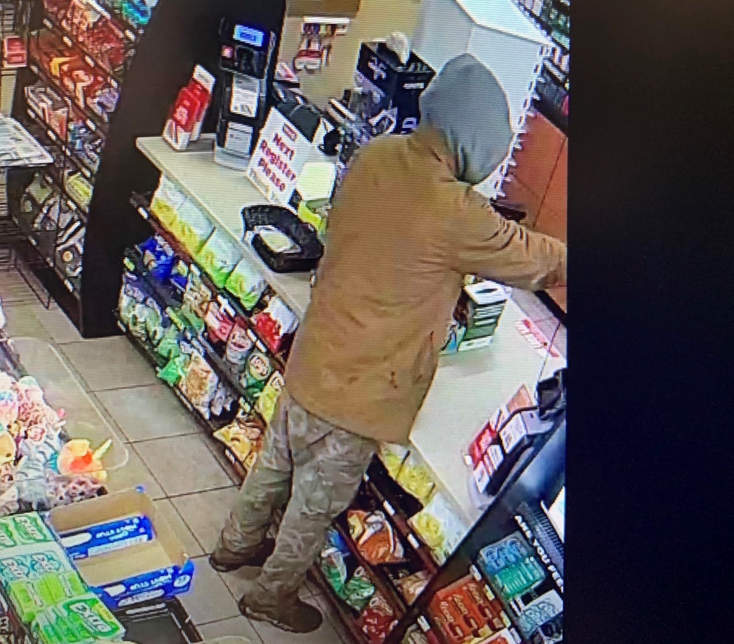 According to NHCSO, “[t]he suspect was shown wearing camouflage pants, a brown jacket with a grey hooded sweatshirt.”