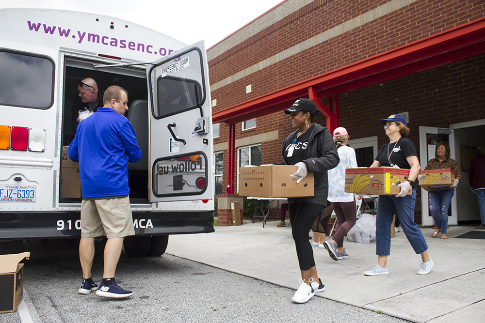 The first day, Sweet N Savory donated meals. By the second, the group coordinated with the school system to collect prepared meals from designated pick-up points and sent out a fleet of volunteers to get them to communities in need. The YMCA donated buses and volunteer time to make the deliveries. Churches and other non-profits pitched in across the county to fill in service-area gaps.