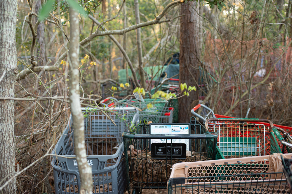 Early Thursday evening, Chloe, 14, was walking on a path through a wooded area behind the Lowe’s Home Improvement off College Avenue. The area is a homeless camp, scattered with shopping carts, tarp tents, and clothes hanging from a wire strung between two trees. She said she lives in an apartment complex on the other side of the woods.
